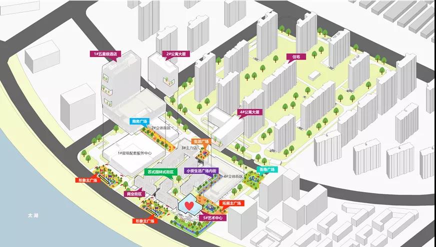 項目將打造為總建筑面積約30萬平方米的地標級城市綜合體,是一個擁有五星級酒店“太湖之帆”,姑蘇風(fēng)情街“太湖之苑”,白鷺藝術(shù)中心”太湖之鷺”等眾多物業(yè)類型的大型建筑群落。