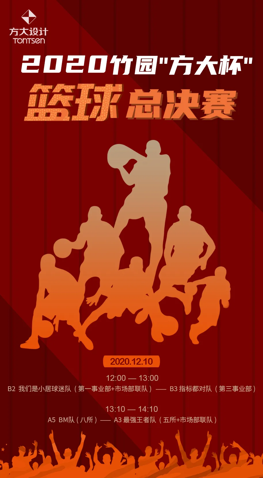 11月5日,2020竹園“方大杯”籃球友誼賽正式啟動。此次籃球友誼賽賽程一個多月,每周2-3場比賽,共有10支隊伍參賽,參賽隊伍分A、B組先進(jìn)行小組賽,再由小組賽決出四強(qiáng),最后四強(qiáng)比拼產(chǎn)生冠亞軍。12月10日決賽當(dāng)天,“我們是小居球迷隊”、“指標(biāo)都對隊”、“最強(qiáng)王者隊”、“BM隊”,四支隊伍為大家奉上了異常精彩的比賽。最終,“最強(qiáng)王者隊”捧得冠軍獎杯。除了籃球賽,公司有關(guān)部門還籌備了其他的體育運動項目,希望通過這些活動,繼續(xù)延續(xù)方大人“合作、活力、拼搏”的精神。