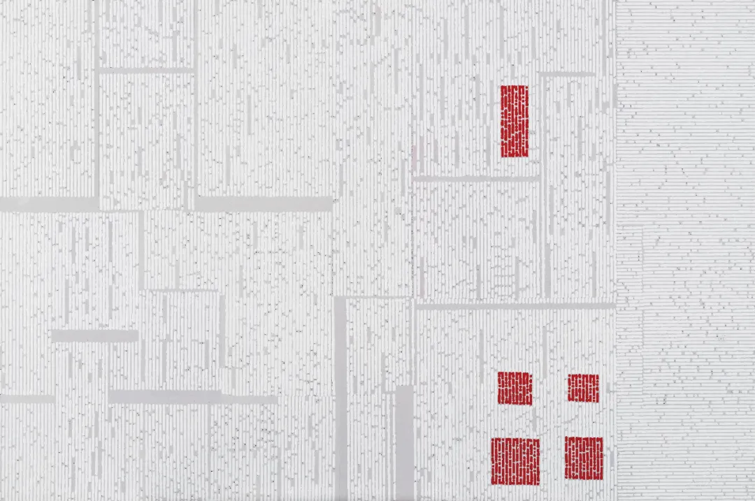 此次參展作品的抽象面貌,是這些藝術(shù)家們?cè)谧晕遗c社會(huì)雙重語境下的表達(dá)方式。申凡重構(gòu)中國(guó)山水,也將“拾遺”日常之物作為創(chuàng)作的起始。陳墻在直覺性的筆跡下呈現(xiàn)理性秩序。潘微將古老的文字符號(hào)進(jìn)行堆疊再創(chuàng)。黃淵青作品無序的顯像背后是具有邏輯性的書寫。薛松運(yùn)用拼貼,將無意義與意義、傳統(tǒng)與當(dāng)下并置。曲豐國(guó)在線性的時(shí)間關(guān)系中陳設(shè)顏色更迭。廖淵應(yīng)用水墨在排列與肌理中展現(xiàn)中國(guó)根深蒂固的文化信仰。旅加藝術(shù)家夏慧雯則一直專注于當(dāng)代水墨的抽象表現(xiàn)。