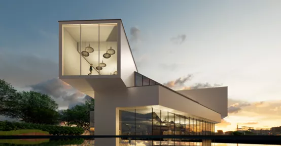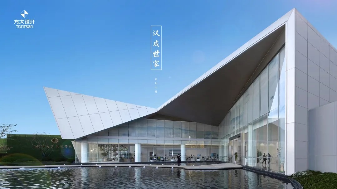 位于地塊東北角的示范區(qū),是整個地塊的第一個形象擔(dān)當(dāng)。設(shè)計采用“遠眺群山碧水,掠影起伏”的山水理念,以折線為建筑表現(xiàn)形式,展示山川起伏、流水環(huán)繞的地域意境。造型以退界-切割-折塑-組合的建筑設(shè)計手法,呈現(xiàn)簡潔大氣、虛實相間的現(xiàn)代建筑空間。