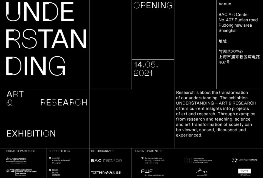5月14日,理解—藝術(shù)與研究 Understanding-Art & Research展覽與論壇在BAC竹園藝術(shù)中心舉行。該展覽由同濟大學(xué)設(shè)計創(chuàng)意學(xué)院、維也納應(yīng)用藝術(shù)大學(xué)主辦,方大設(shè)計聯(lián)合主辦,展期一周。研究是關(guān)于我們理解的轉(zhuǎn)變。展覽“理解—藝術(shù)與研究”提供了對藝術(shù)與研究項目的最新見解。通過研究和教學(xué)中的實例,可以觀察,感知,討論和體驗社會中科學(xué)和藝術(shù)的轉(zhuǎn)變。另外,同主題論壇將邀請兩校教授、研究員、藝術(shù)家作為嘉賓就此主題進行更加深入的探討與交流。