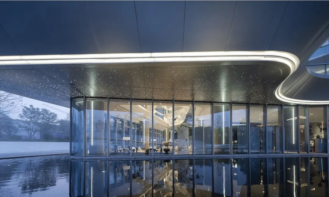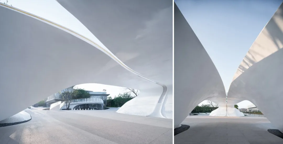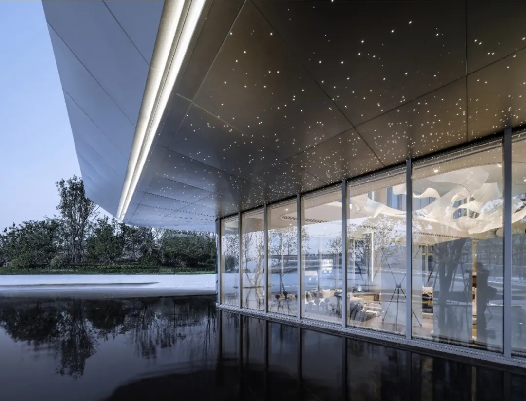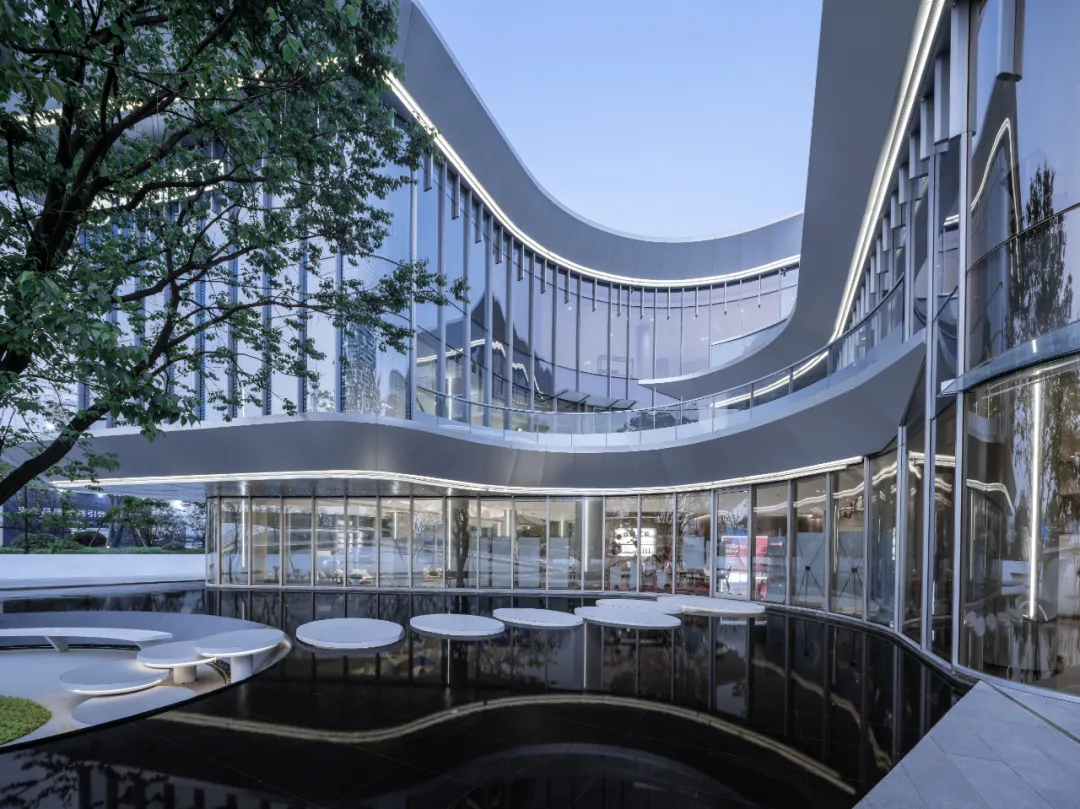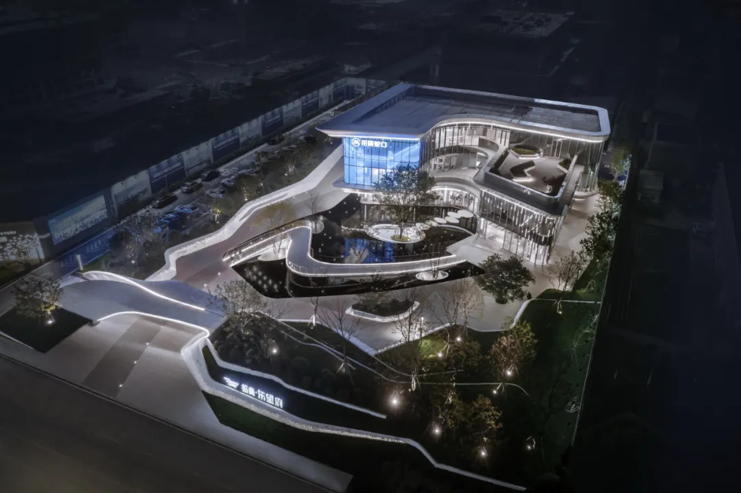 東望府生活美學館,用藝術(shù)化的建筑語言,結(jié)合高科技的現(xiàn)代材料,以靈動的造型形態(tài)、充滿魅力的光影變幻,實現(xiàn)了充滿想象力的時空穿越體驗,為高科技園區(qū)基地帶來新的集聚角落,打卡空間。