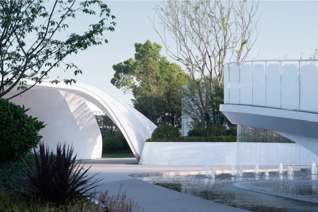 映入眼簾的是疊級大水景,倒映在星湖當中,打造強烈的視覺沖擊,增強場地記憶點,提升體驗感。