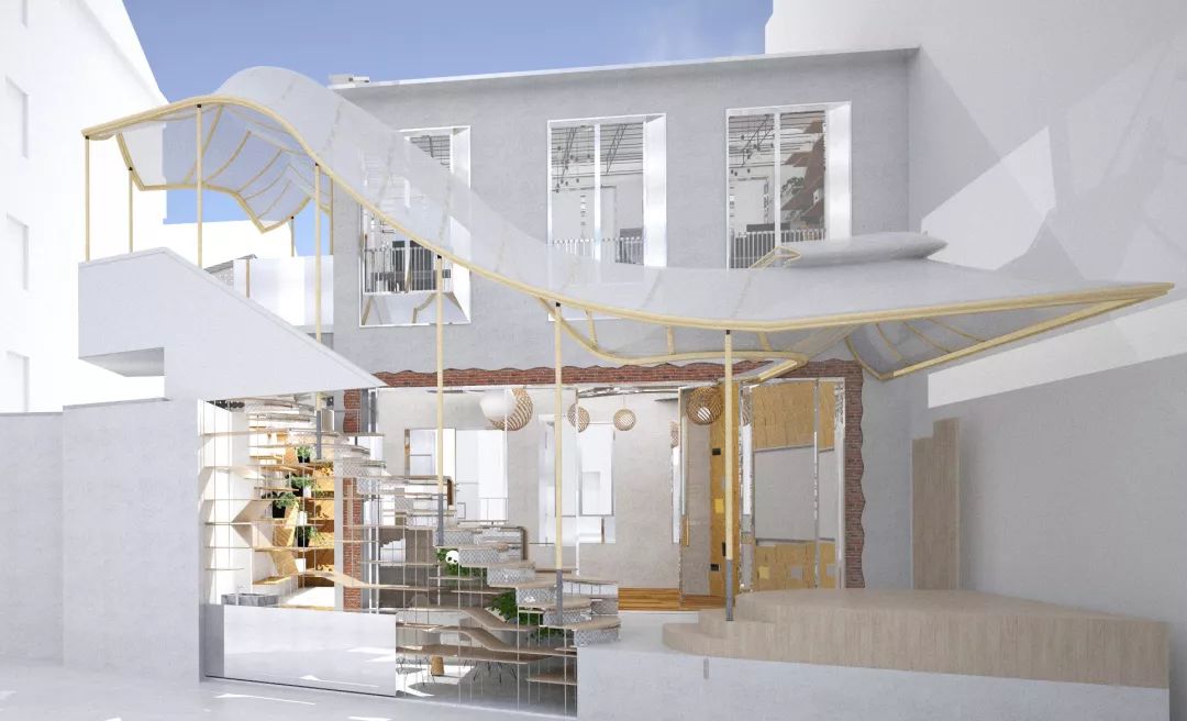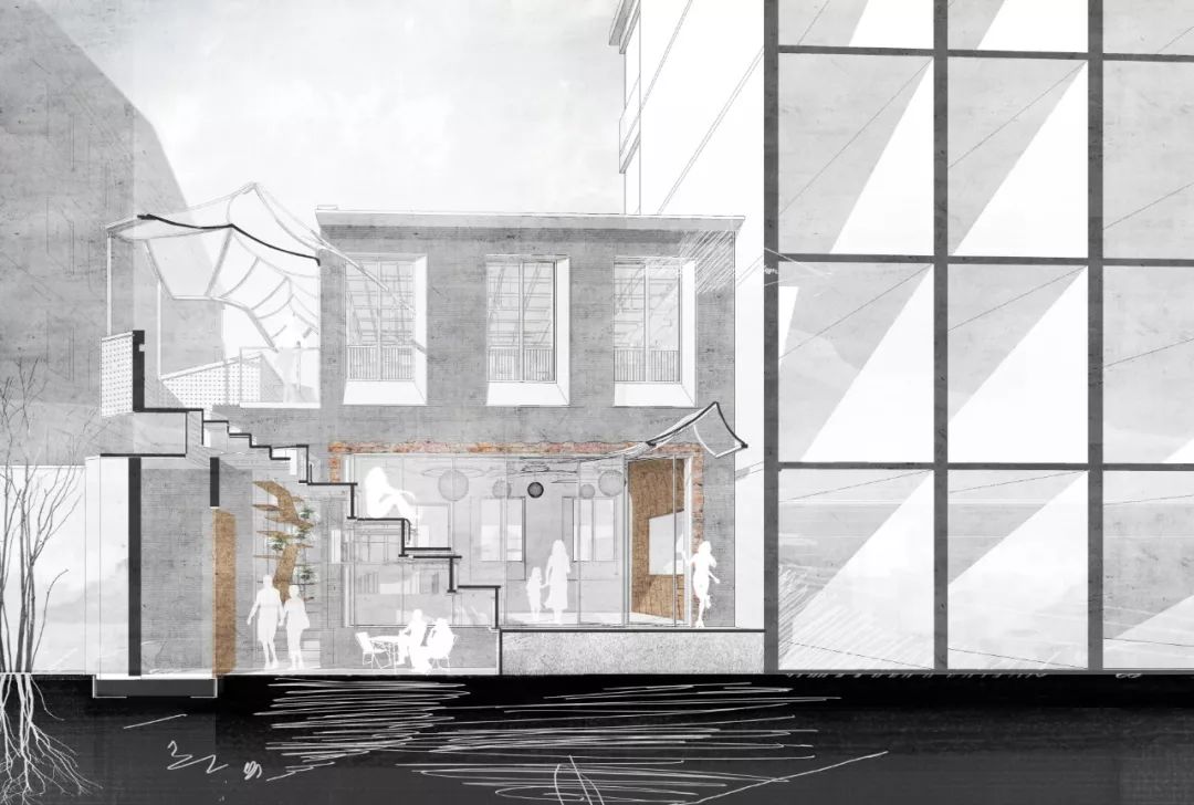 在改造設(shè)計(jì)的過程中,設(shè)計(jì)師打開庭院空間,模糊室內(nèi)外空間界限。形成曖昧的空間形式,也為功能需求的擴(kuò)充提供可能。