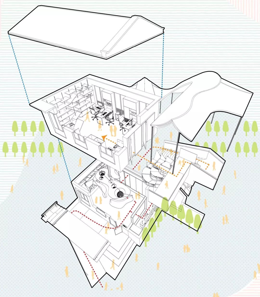 庭院在古代還是個(gè)滿足多種需求的多功能空間,在此次改造設(shè)計(jì)中,設(shè)計(jì)師希望可以充分利用庭院空間,將多種活動(dòng)進(jìn)行有機(jī)串聯(lián),突出空間功能的多樣性,豐富社區(qū)活動(dòng),展示社區(qū)生活態(tài)度。