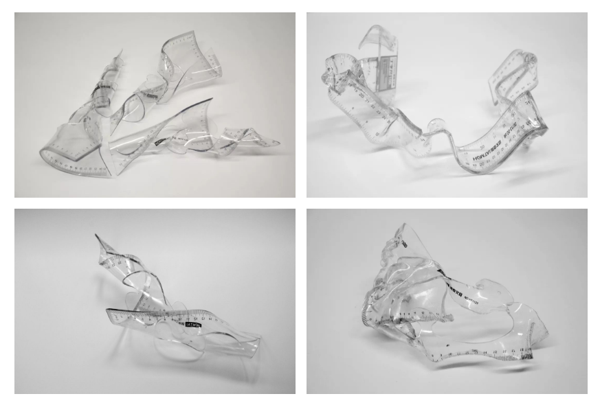 《測(cè)量云》由剛剛結(jié)束考試的學(xué)生使用高溫槍加熱后扭曲尺子完成。在激烈的考試之后,它們用來(lái)釋放學(xué)生的壓力情感,將剛性物體轉(zhuǎn)換成柔性物體,讓學(xué)生們可以改變“規(guī)則”的形態(tài),同時(shí)釋放學(xué)生們的創(chuàng)造力。這些扭曲的尺子形成了一個(gè)漂浮的云體系,造型豐富,錯(cuò)綜復(fù)雜,展現(xiàn)了豐富的創(chuàng)造力。