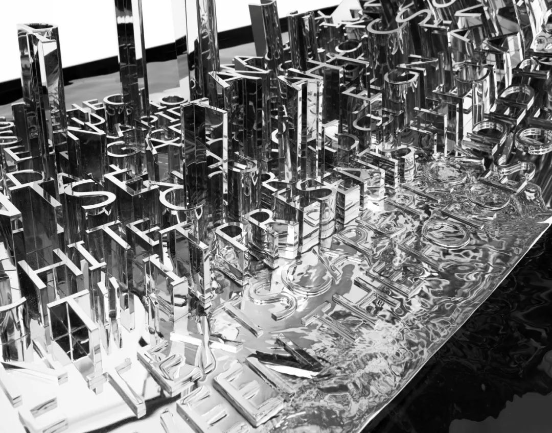 文本景觀(guān)的藝術(shù)形式首先由周洪濤教授于2013年發(fā)起,最早是采用3D打印技術(shù)結(jié)合文字和雕塑語(yǔ)言形成可閱讀的景觀(guān),在視覺(jué)上形成都市天際線(xiàn),包括威尼斯、上海和紐約等高密度大城市的景觀(guān),以引起人們對(duì)空間和城市化的關(guān)注。