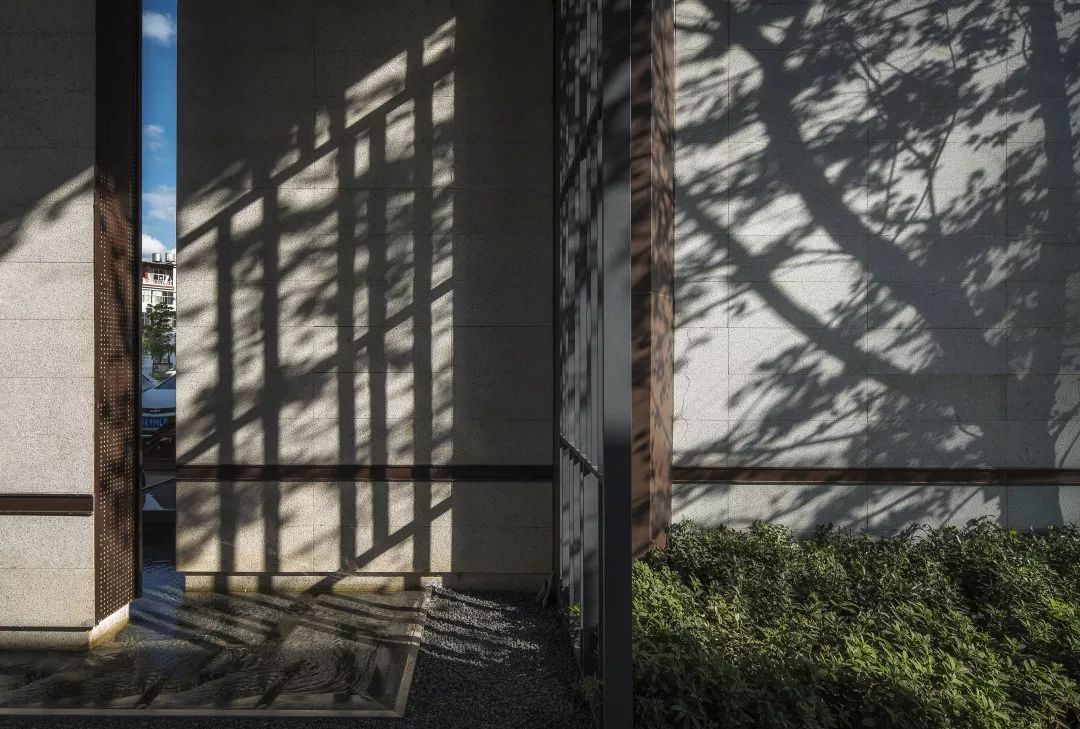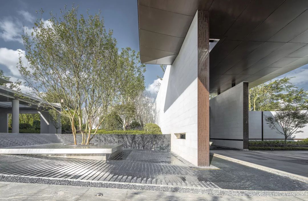 越過門廊,轉向庭院。跌水小景輝映著庭院景致,微風略過,漣漪泛起的是內心對寧靜的向往。寬闊的前庭空間,極大的強調了“入則尊貴”的儀式感,將雅致格調體現(xiàn)的淋漓盡致。